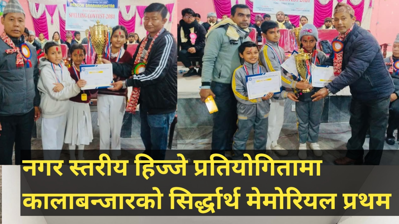 सुनसरीको बराहक्षेत्र वडा नम्बर ५ कालाबन्जारमा रहेको सिर्द्धार्थ मेमोरियल इङलिस स्कुल नगर स्तरीय हिज्जे प्रतियोगितामा प्रथम भएको छ।