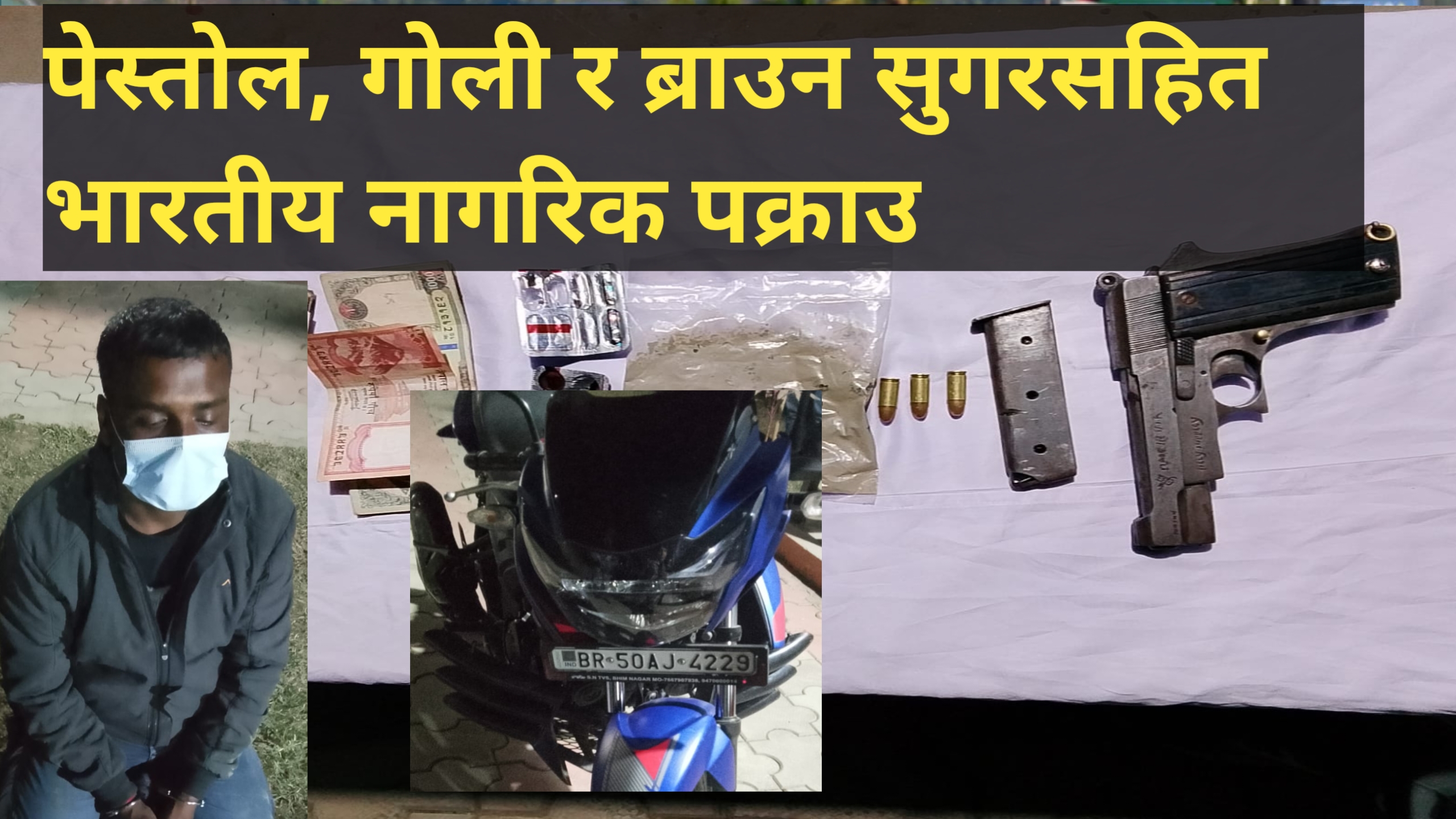 पेस्तोल, गोली र ब्राउन सुगरसहित भारतीय नागरिक पक्राउ