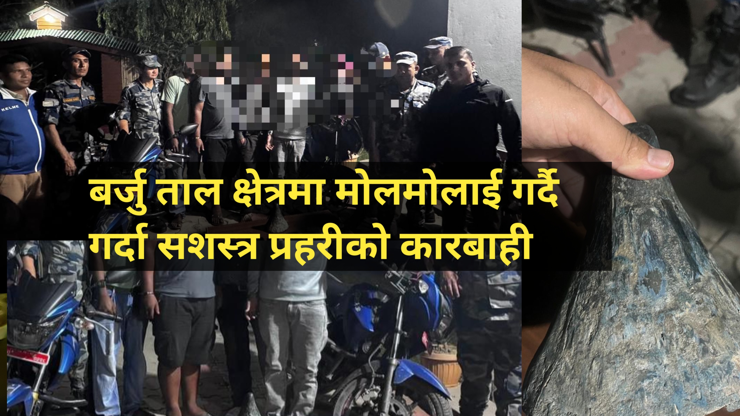 मिति २०८३ वैशाख ३ गते साँझ करिब ७:३० बजे सुनसरीको बर्जु गाउँपालिका–६ स्थित बर्जु तालको पूर्वी गेटबाट करिब १५० मिटर भित्र अवैध कारोबार भइरहेको विशेष सूचनाका आधारमा खटिएको सशस्त्र प्रहरी टोलीले उनीहरूलाई नियन्त्रणमा लिएको हो।