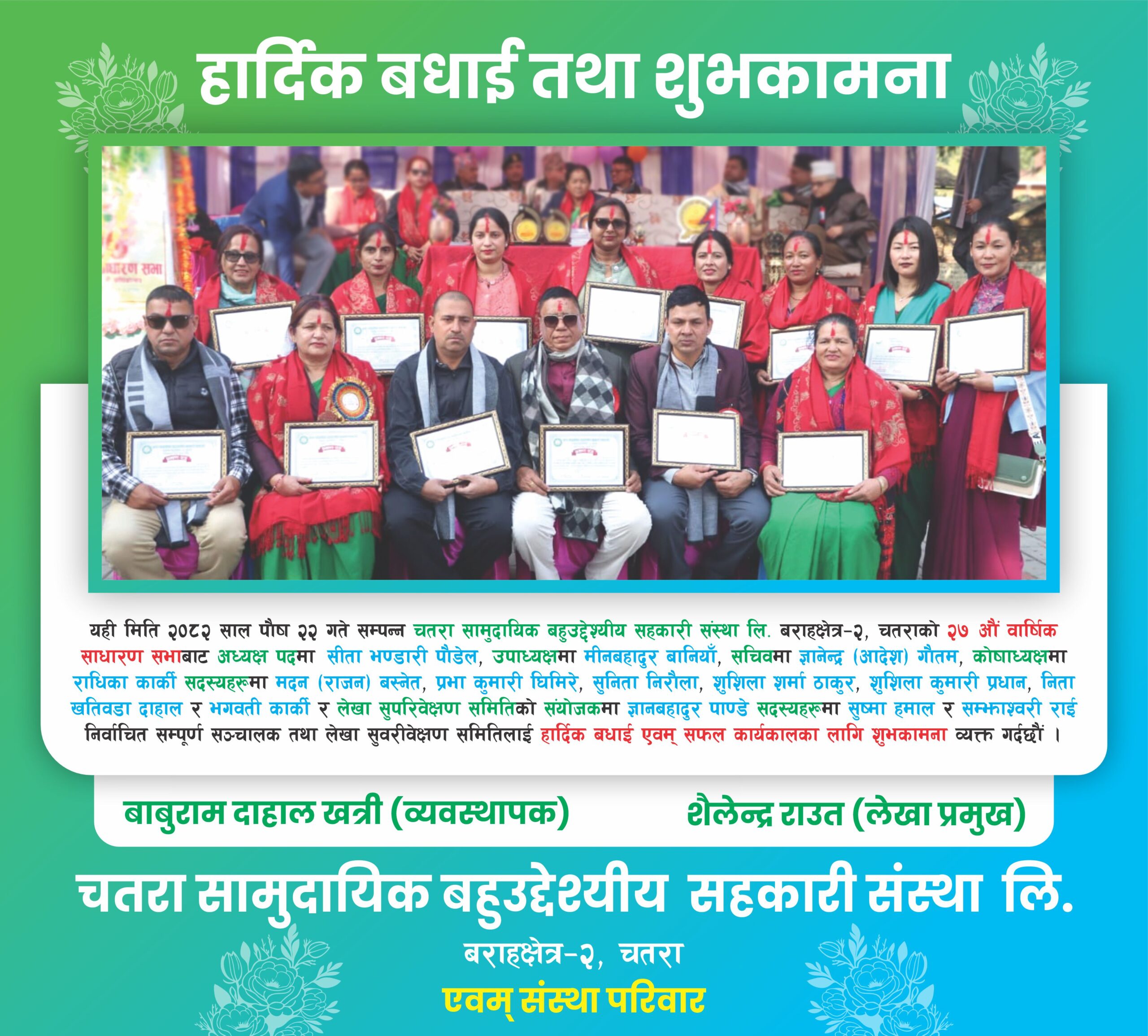 जिल्ला बचत तथा ऋण सहकारी संस्थाको सञ्चालक समितिको अध्यक्ष गोमा गिरि सर्वसम्मत चय बराहक्षेत्र/ नडाहा जिल्ला बचत तथा ऋण सहकारी...